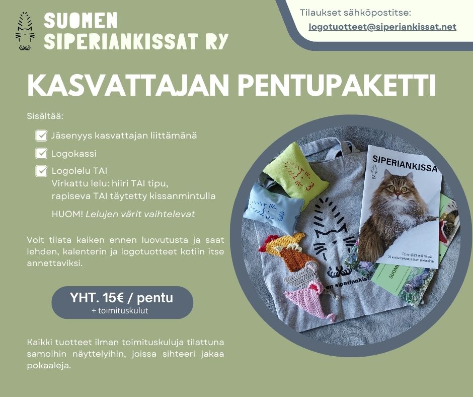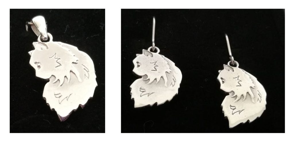 Ella Heikura on suunnitellut siperiankissa-aiheiset hopeariipuksen ja hopeakorvakorut jäsenemme Pitta Innaksen idean pohjalta. Korun mallina on toiminut siperiankissa Mäntylän Livvi, “Lilja”.