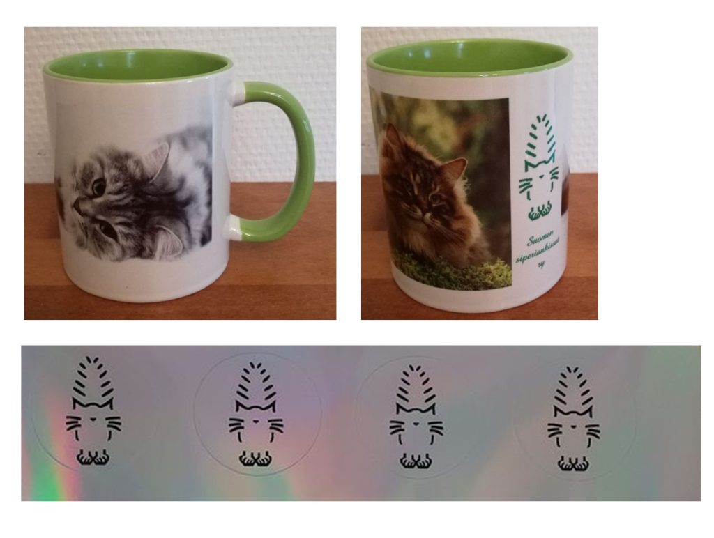 Muki 325 ml, mikron- sekä konepesunkestävä, Mukissa 2 kuvaa sekä yhdistyksen logo ja nimi 12€