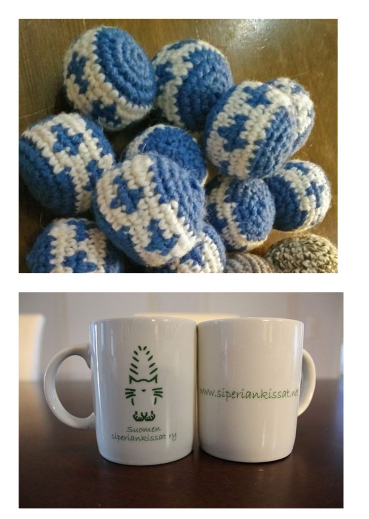 Pieni erä virkattuja palloja ja vanhan mallisia mukeja